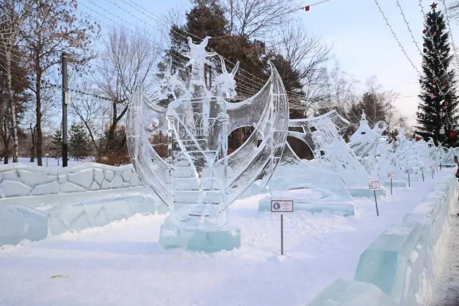 Финальной точкой маршрута стал новогодний городок в городском парке «Динамо». На главной аллее парка традиционно красуются, в том числе, филигранные ледовые фигуры, малые архитектурные формы Китолет, Корабль, 12-ти метровый Кит, касатка, кот-рыбак.