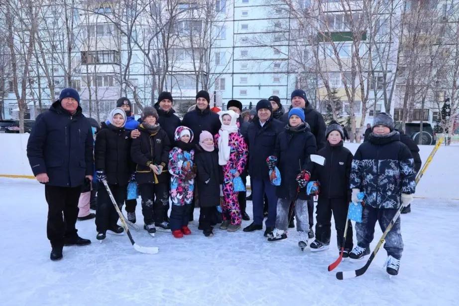 Первым объектом посещения стал двор в квартале ДОС. Отремонтированная спортивная площадка теперь превратилась в популярный каток. Дмитрий Демешин пообщался с детьми и вручил им новогодние подарки.