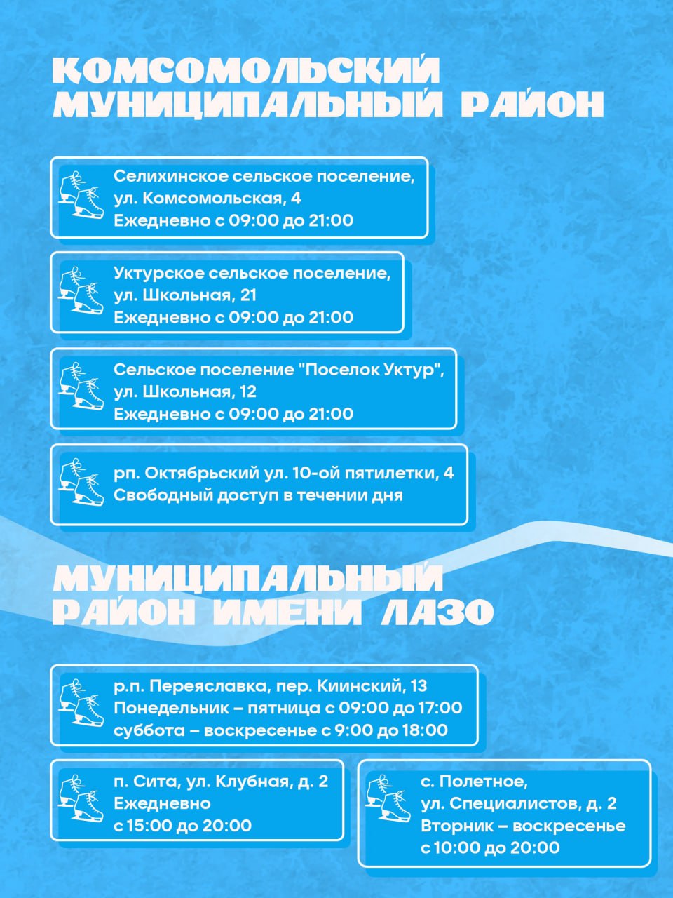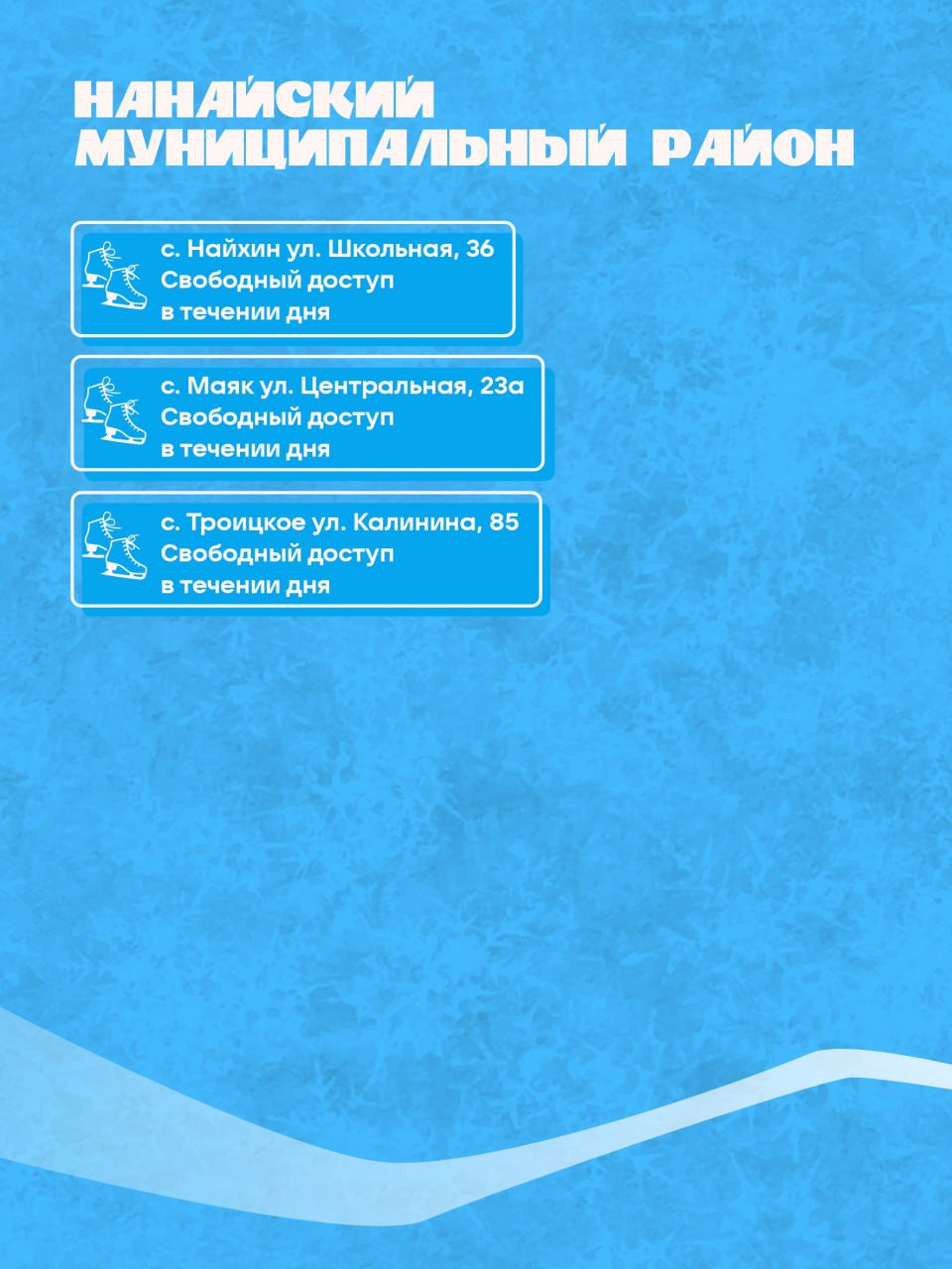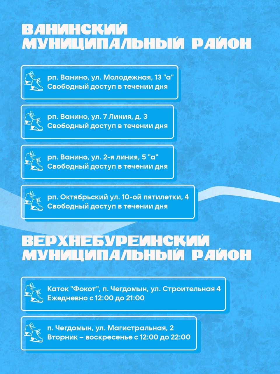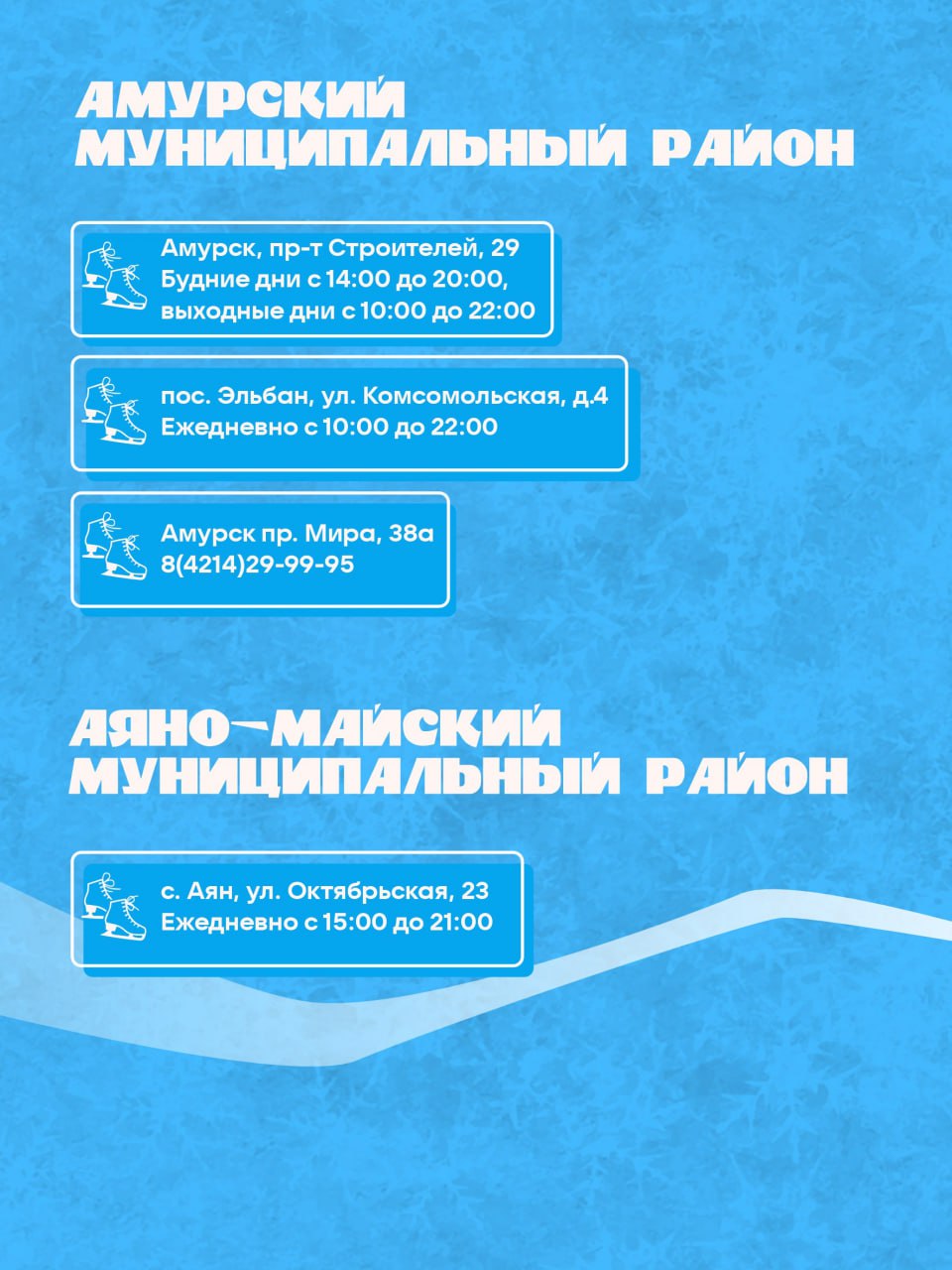 Перечень мест в Хабаровском крае, где можно активно провести время на новогодних каникулах и покататься на коньках, разместила "Дирекция спортивных сооружений Хабаровского края".