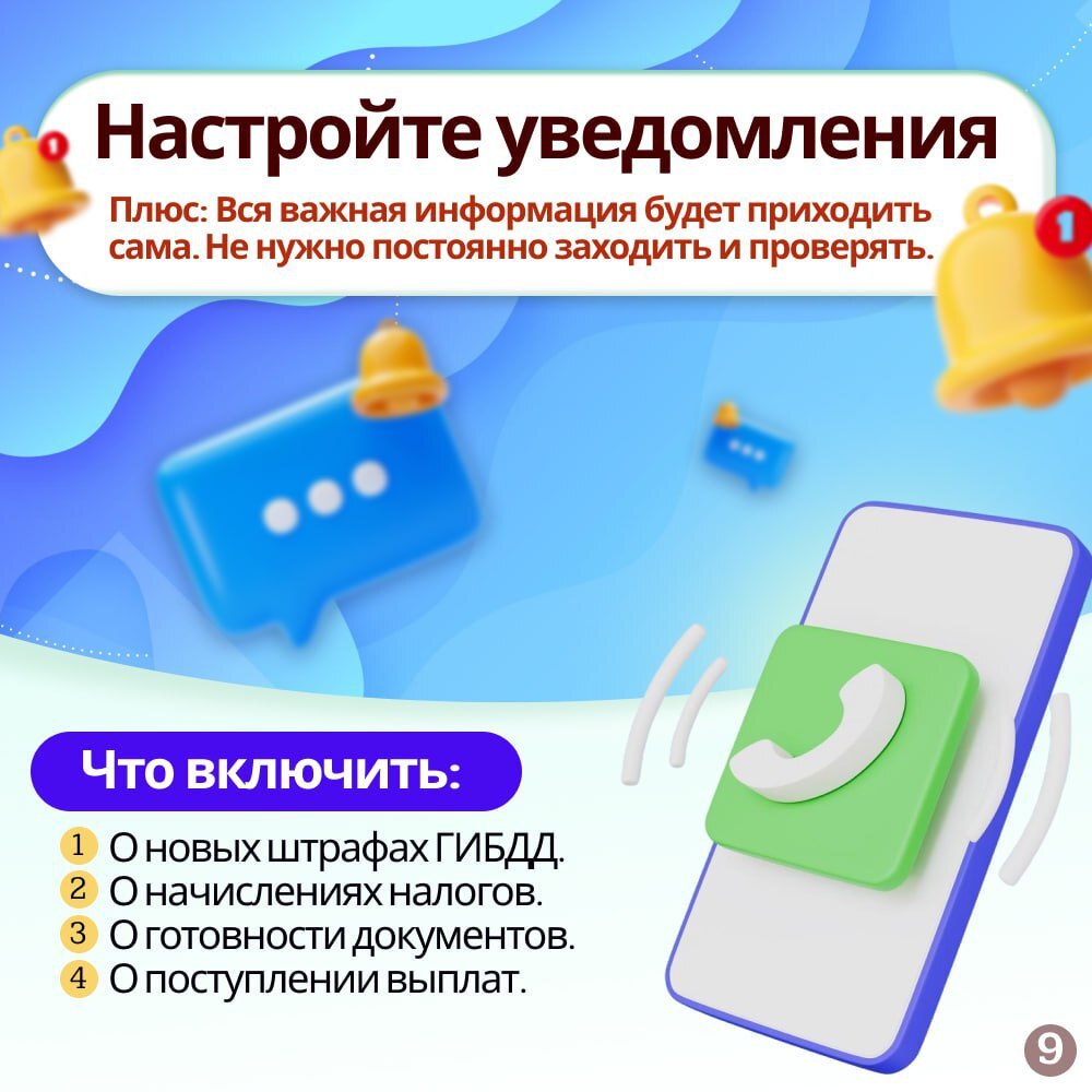 Проверить уведомления — не «висит» ли там штраф, налог или важное письмо?