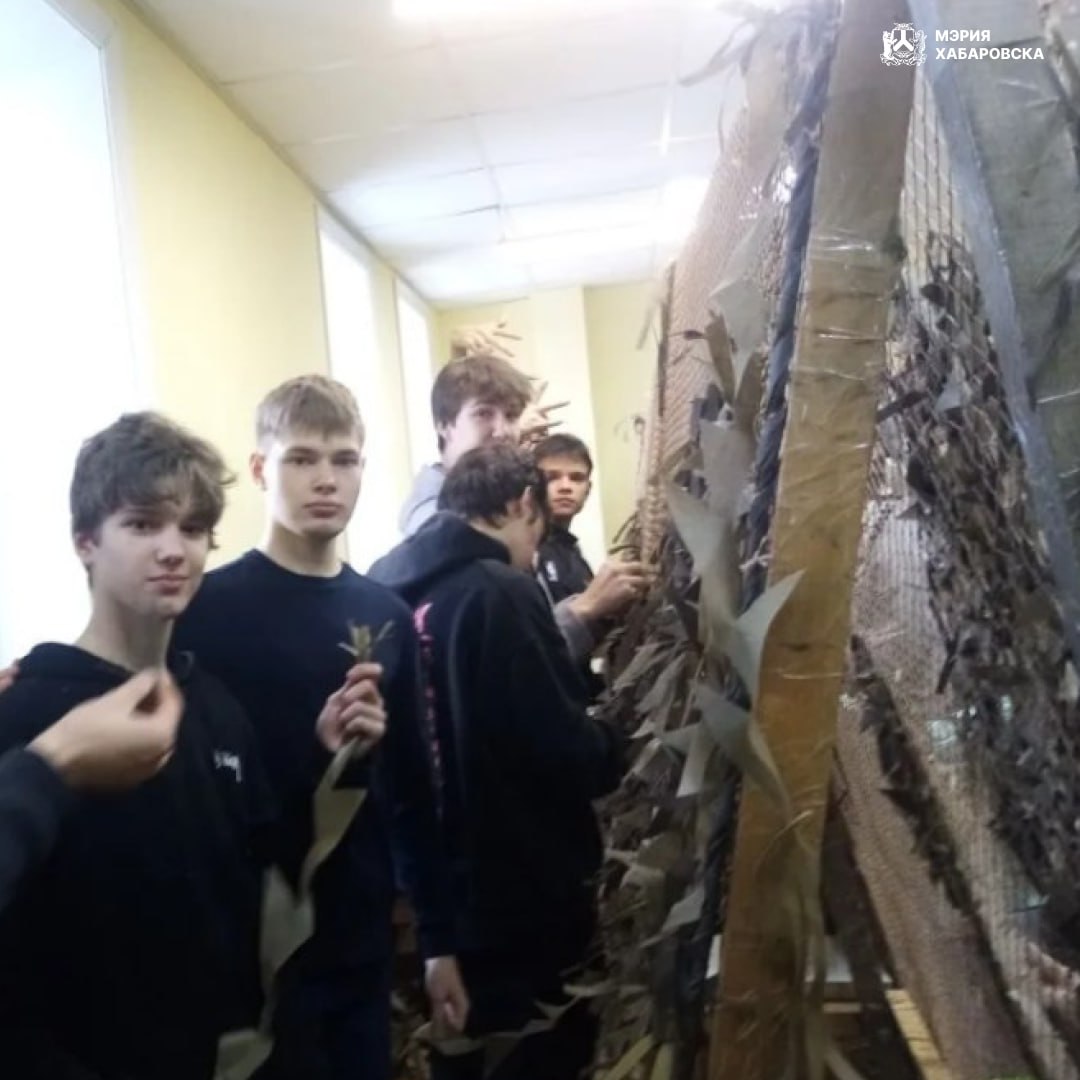 Студенты добровольческих отрядов «Щит», «Доброе сердце» и «Креативная студия» КГБ ПОУ «Хабаровский технический колледж» приняли участие в важной и нужной работе — плетении маскировочных сетей для военнослужащих, участвующих в специальной военной операции.