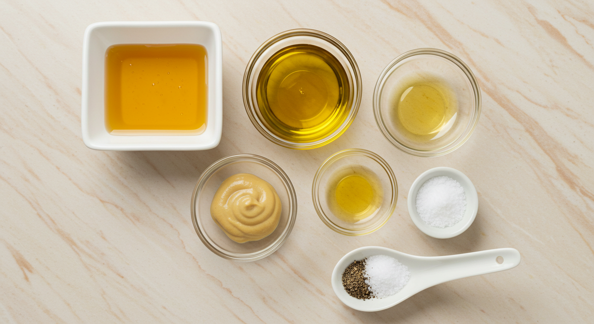 Приготовление медово-горчичного соуса начинается с простого смешивания ингредиентов. В маленькую миску добавляют мед, оливковое масло, горчицу и лимонный сок. Сначала все компоненты нужно немного перемешать, чтобы избежать брызг, затем взбивают венчиком или миксером до получения однородной массы.