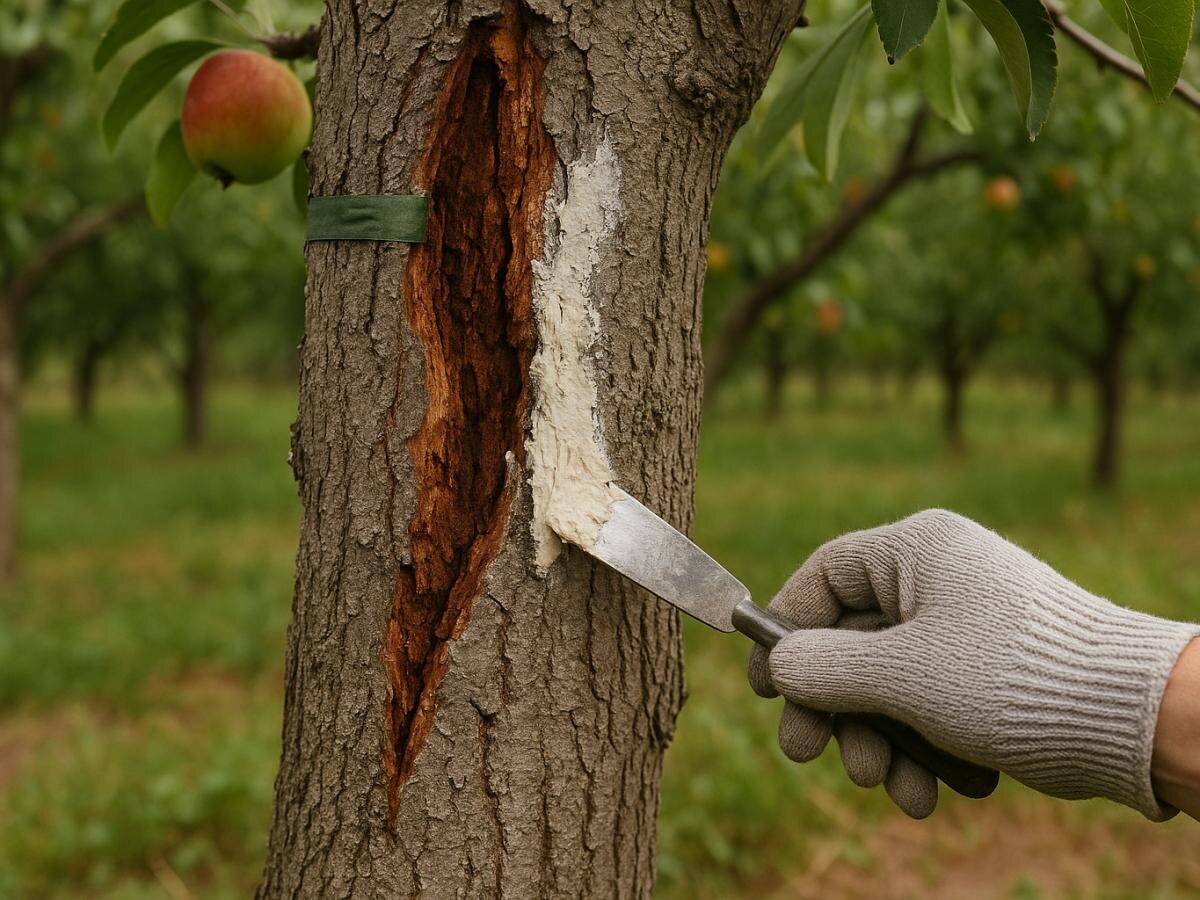 Если кора отслаивается, необходимо действовать быстро. Сначала следует аккуратно зачистить поврежденные участки, удаляя только те части коры, которые легко отходят. После этого обработать рану противогрибковым средством или 1% раствором медного купороса для дезинфекции.