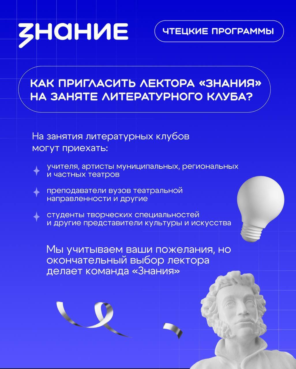 Образовательные учреждения региона могут пригласить лектора «Знания» на занятие литературного клуба