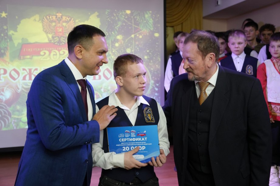 Еще одному воспитаннику Максим Иванов вручил денежный сертификат в качестве поощрения за хорошую учебу.