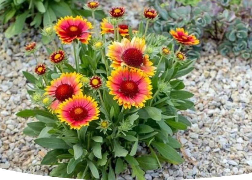 Эти цветы отлично смотрятся в компании с другими многолетниками, такими как рудбекия и белые ромашки. Высокие дельфиниумы или акониты в синих и голубых тонах станут чудесным дополнением к ярким гайлардиям.