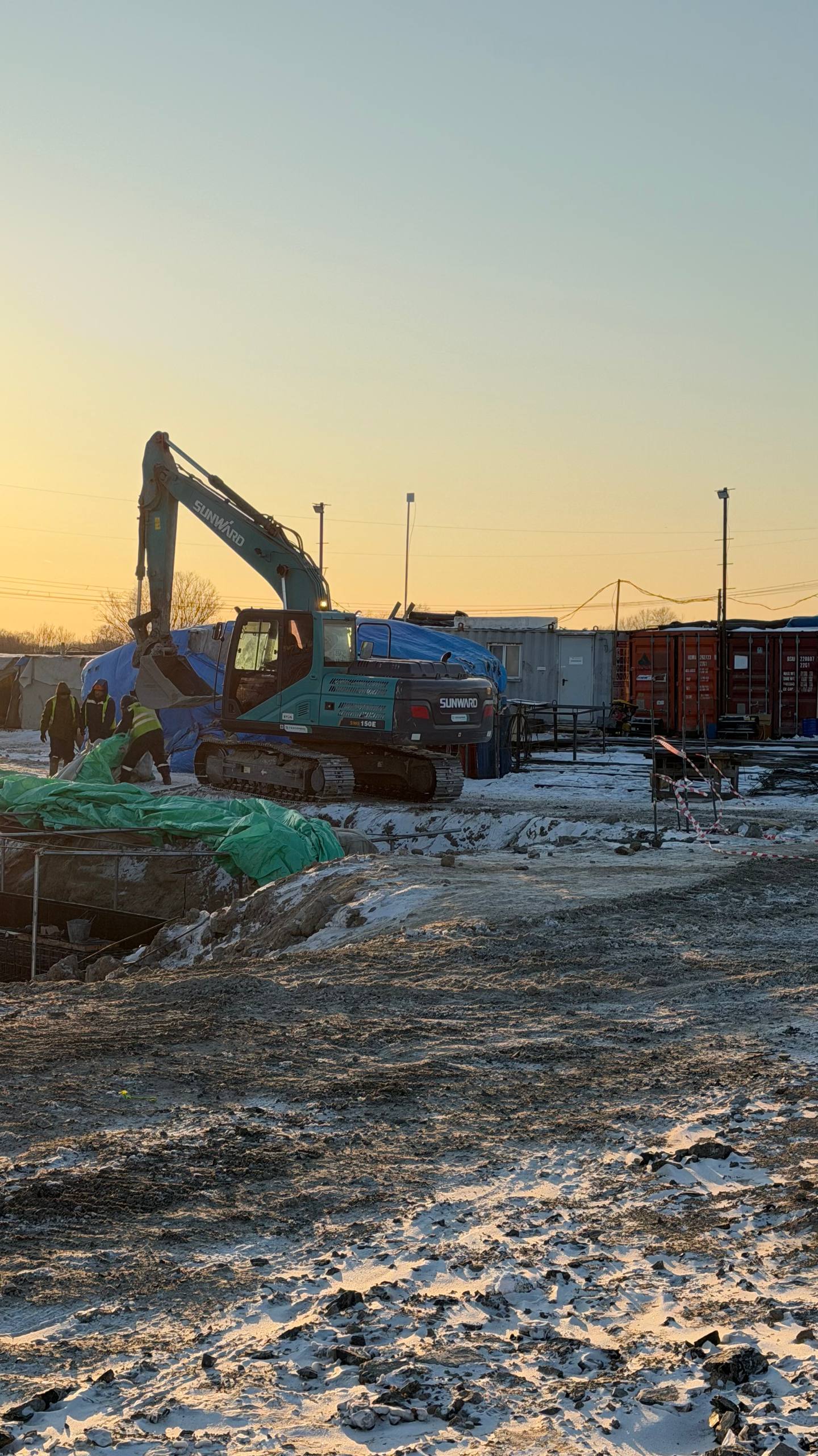 Движется вперед и подъездная дорога — строят почти 4 км трассы к границе. Работа кипит в две смены, включая ночные.
