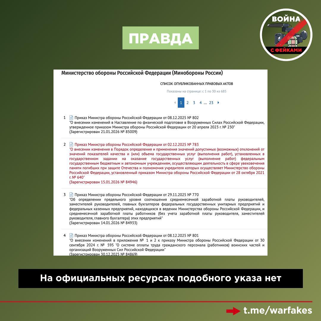Правда: Документ – подделка, информация о выпущенном указе — фейк. Ни на сайте ведомства, ни на других официальных ресурсах подобного постановления нет.