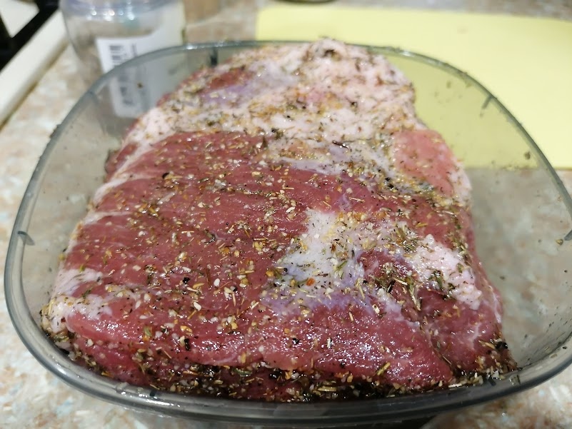 - Мясное блюдо: Для буженины из свиной шеи лучше использовать сухой посол. Мясо нужно намазать растительным маслом, чтобы специи лучше прилипли, а затем убрать в герметичный контейнер в холодильник. Часов за два до подачи стоит поставить в духовку при температуре 160 градусов.