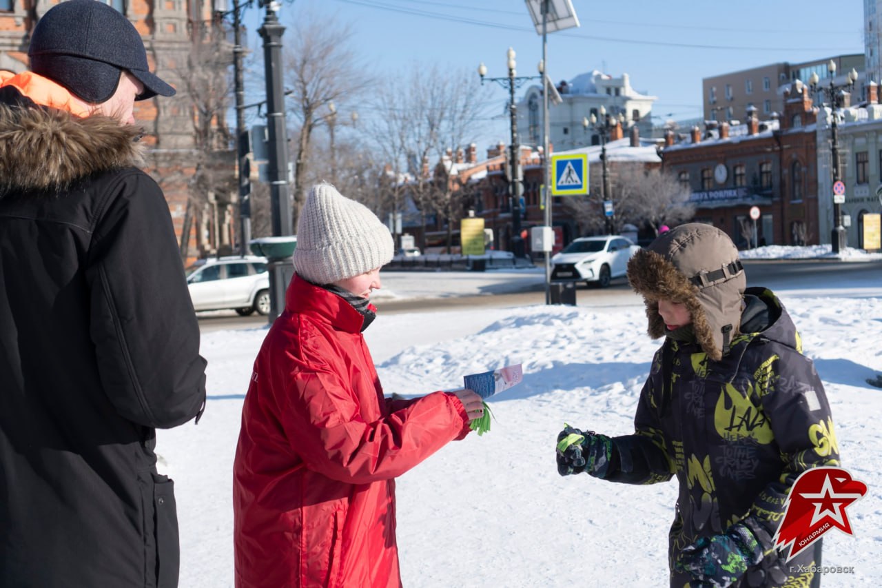 Активисты Центра патриотического воспитания совместно с участниками движения «Юнармия» и воспитанниками военно-патриотических клубов провели важную акцию «Ленточка Ленинградской Победы» на Комсомольской площади Хабаровска.