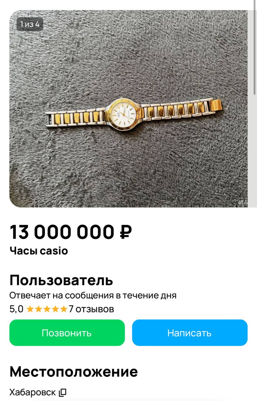 Хабаровчанин продает наручные часы за 13 миллионов рублей, утверждая, что приобрел их в Японии в 1995 году.