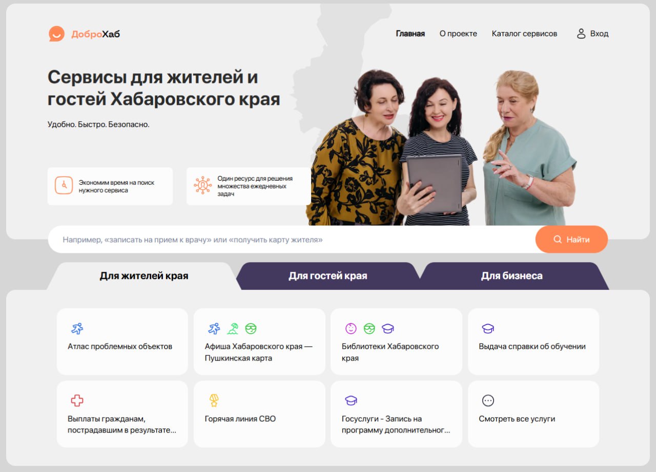 Сегодня «ДоброХаб» включает более 60 сервисов и услуг, популярных у жителей и гостей края. Также здесь представлен расширенный раздел для бизнеса.