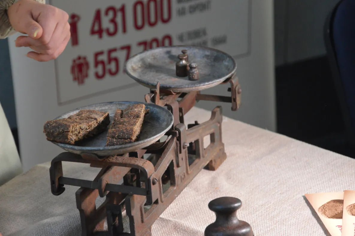 Во время акции предлагали 125-граммовые кусочки хлеба по приближенной рецептуре. Изготовили его местные специалисты, он абсолютно безопасен и пригоден к употреблению, но имеет специфический вкус, в чем и могли убедиться участники акции.