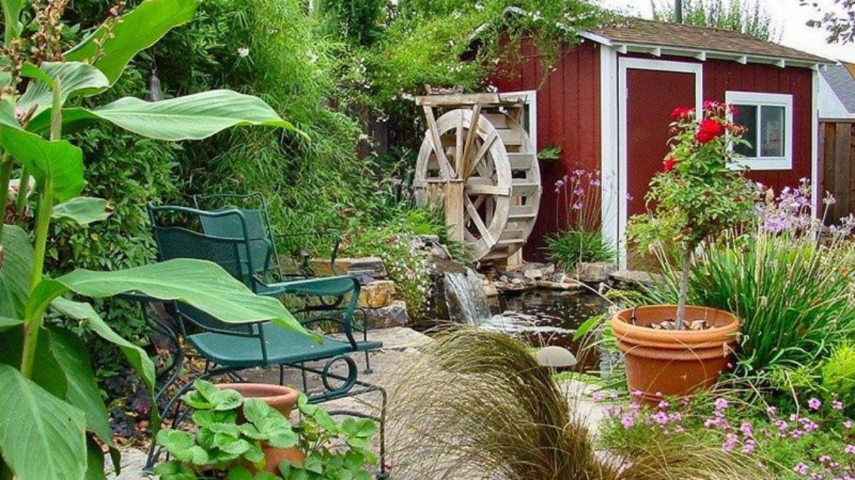 - Имитация мельницы: У многих дачников маленький прудик — мечта. Но фантазия некоторых не останавливается лишь на этом; они строят над прудом настоящие мельницы, которые не только радуют глаз, но и создают приятное журчание воды.