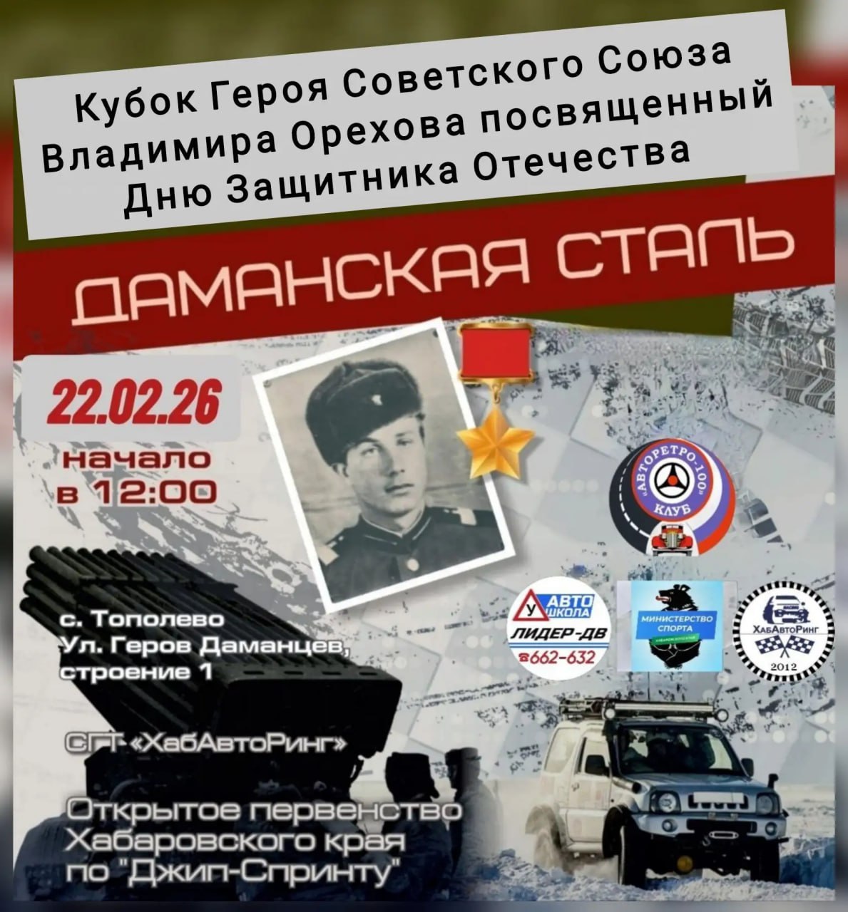 22 февраля в 12:00 состоится открытие первенства Хабаровского края по зимнему "джип-спринту" на Кубок Героя Советского Союза Владимира Орехова "Даманская сталь".
