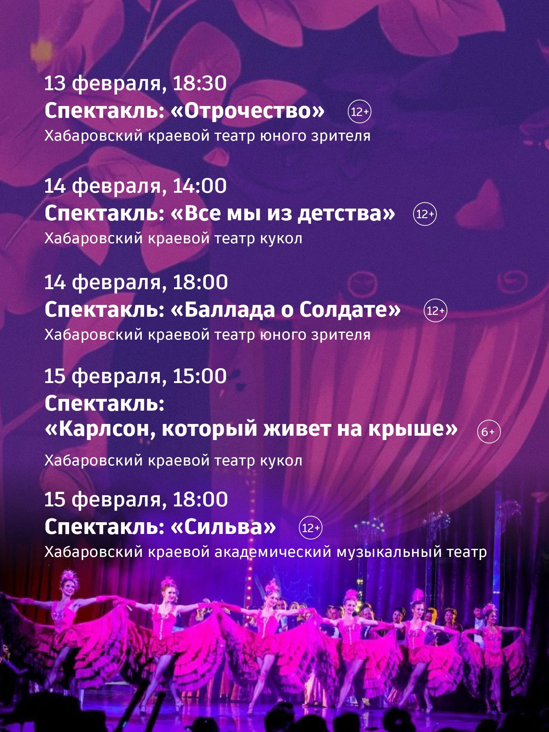 Свои работы представят шесть профессиональных театров: Хабаровский краевой академический музыкальный театр, Хабаровский краевой театр драмы, Хабаровский краевой театр юного зрителя, Хабаровский краевой театр кукол, камерный театр «Триада» и Драматический театр Комсомольска-на-Амуре.