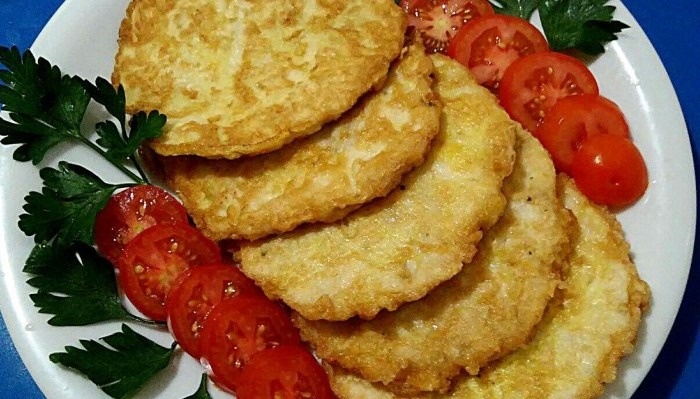 - Отбивные в кляре: Куриное мясо обмакивается в тесто и обжаривается до золотистой корочки.