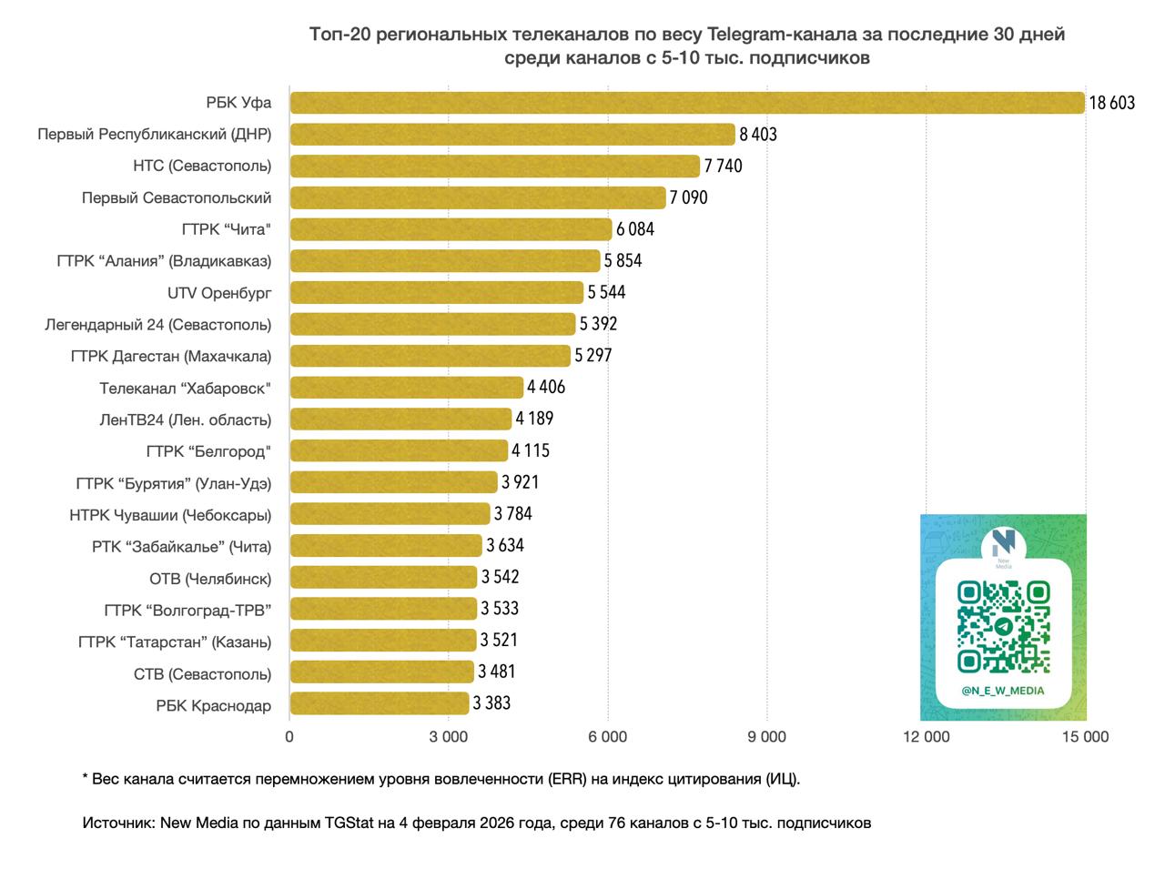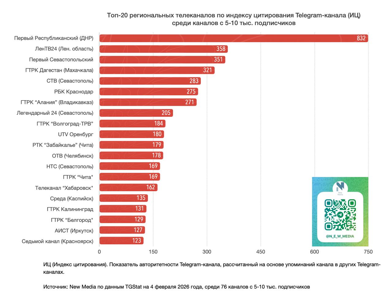 Рейтинг опубликован в New Media — телеграм-канале гендиректора Национальной ассоциации телерадиовещателей Александра Широких. Данные взяты из сервиса TGStat по состоянию на 4 февраля.