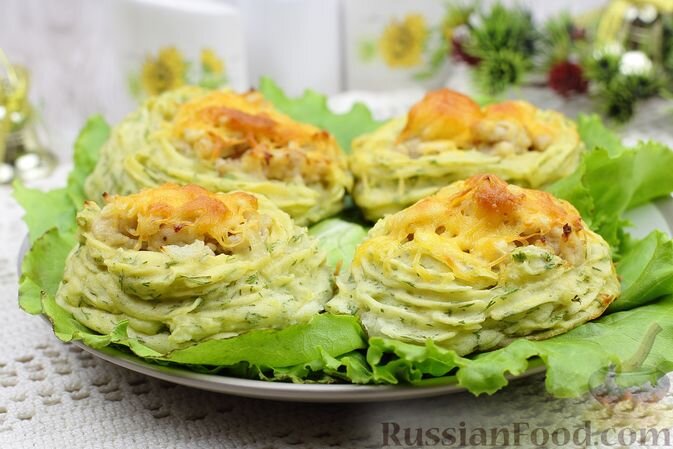 - Картофельные гнёзда с курицей и сыром: Это блюдо подарит вам комфорт и радость. Из картофельного пюре и обжаренного куриного фарша формируются великолепные гнёзда, обсыпанные тёртым сыром и запечённые до золотистой корочки.