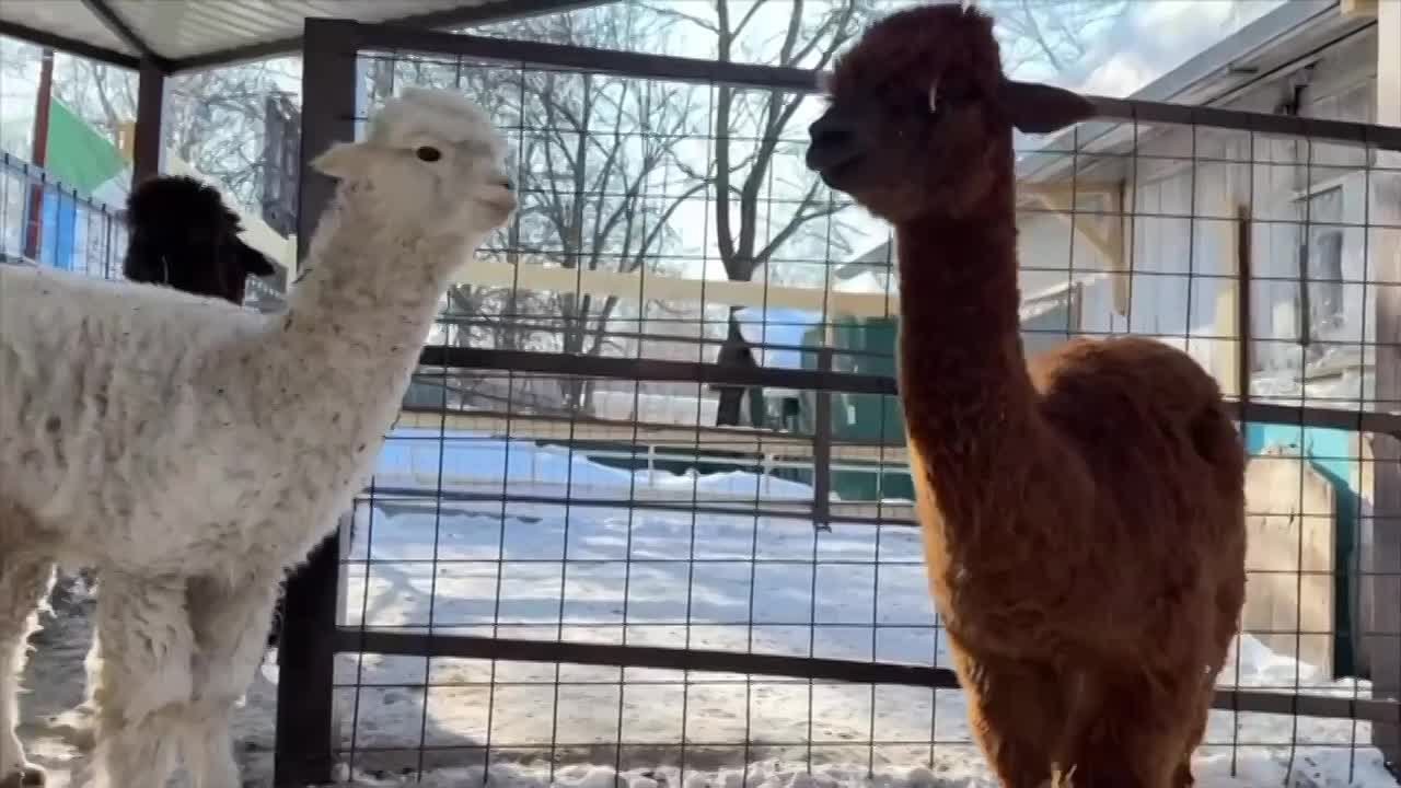Трио альпак из Чили уже адаптировалось к суровой хабаровской зиме: животные не боятся выходить на ежедневные прогулки.