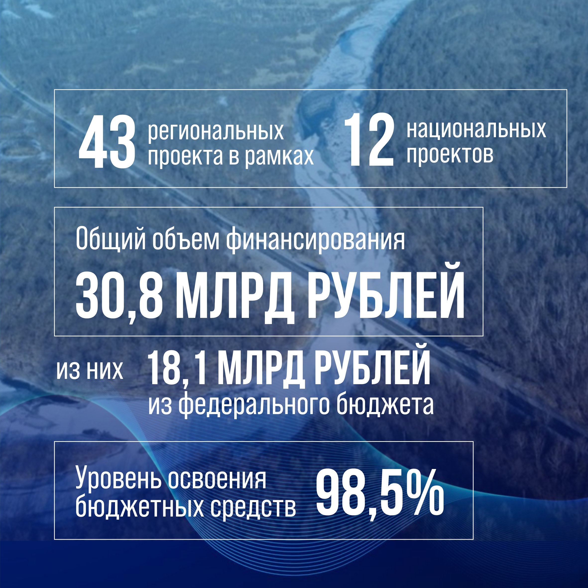 В прошлом году в регионе реализовывалось 43 региональных проекта в рамках 12 нацпроектов. Общий объем финансирования составил 30,8 млрд рублей, из них 18,1 млрд привлечено из федерального бюджета. Уровень освоения бюджетных средств достиг рекордного за 7 лет показателя в 98,5%, что выше среднероссийского (97,9%) и среднего по ДФО (96,9%).