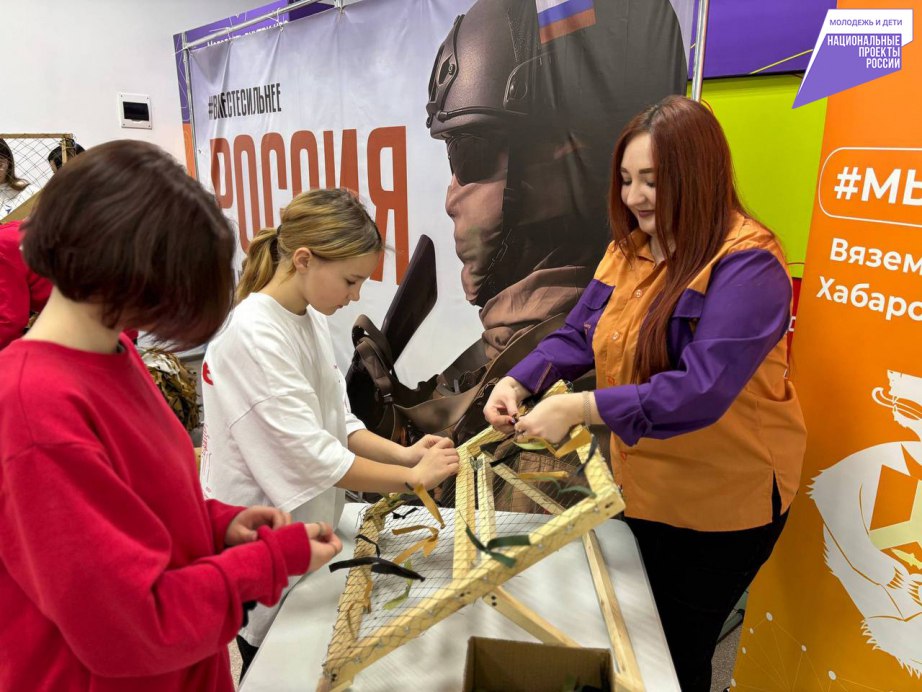 Плетение маскировочных сетей – одно из мероприятий краевой добровольческой акции «День добрых дел», которая проводится в рамках президентского нацпроекта «Молодежь и дети».