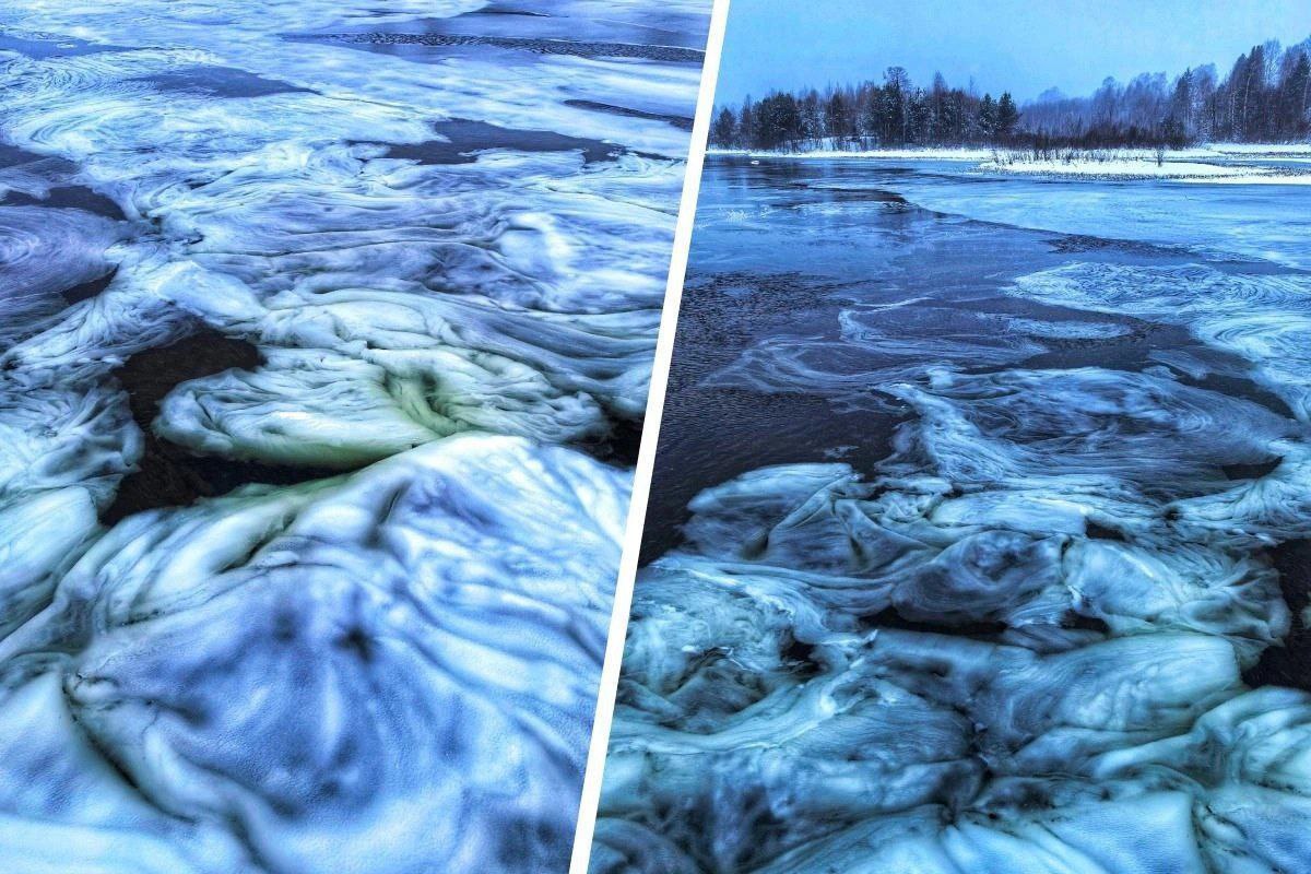 Почему этот снег не утонул? Оказывается, что при температуре воды 0C обильные хлопья не тают, а густеют, превращаются в пластичную снежно-водяную массу. Остальное делает ветер и медленное течение.