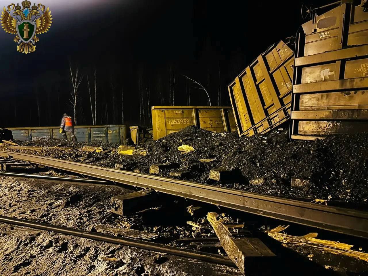 В Хабаровском крае сошли с рельсов 25 вагонов с углем, 21 из них — с опрокидыванием