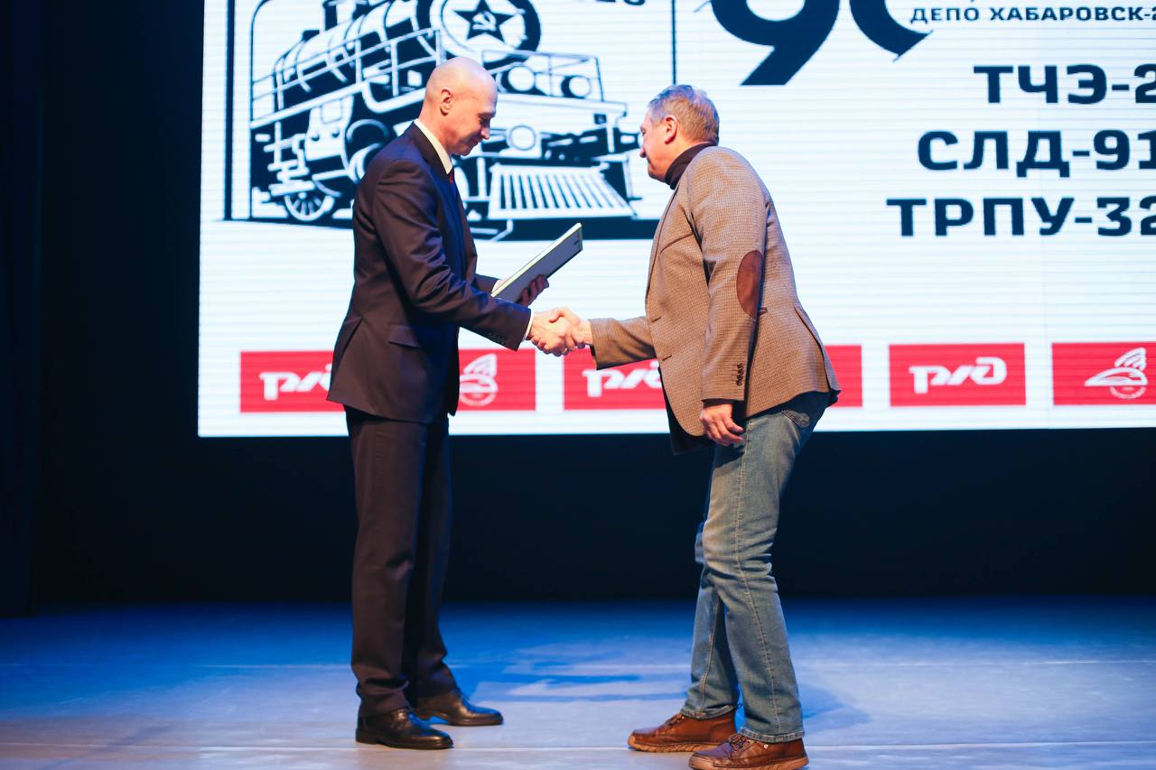 Сотрудники сервисного локомотивного депо Дальневосточное и эксплуатационного депо Хабаровск-2 отпраздновали 90-летие со дня рождения общего для ремонтников и машинистов предприятия.