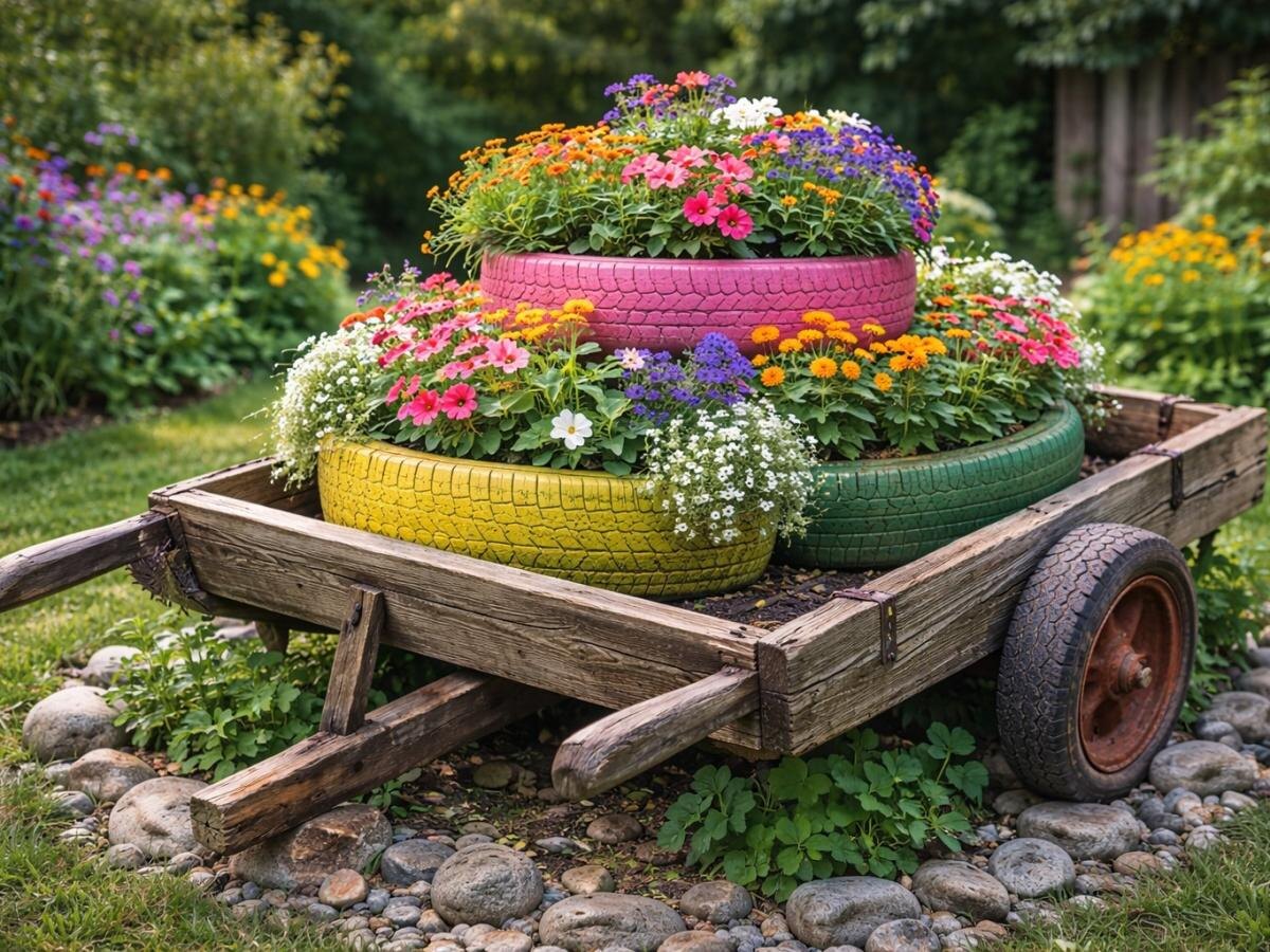 Клумбы из подручных материалов: сочетание идеи и гармонии