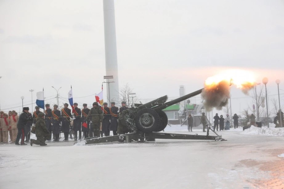 Торжественные мероприятия продолжились на территории арены «Ерофей», где прозвучал традиционный полуденный выстрел. Его произвел Герой России Азатбек Омурбеков. По поручению губернатора Дмитрия Демешина всех присутствующих приветствовал вице-губернатор Артем Мельников.