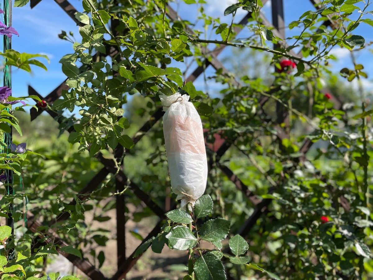 8. Защита от солнца: Оберните бутылку светлым пакетом и фиксацией веревочками, чтобы она не соприкасалась с корой.