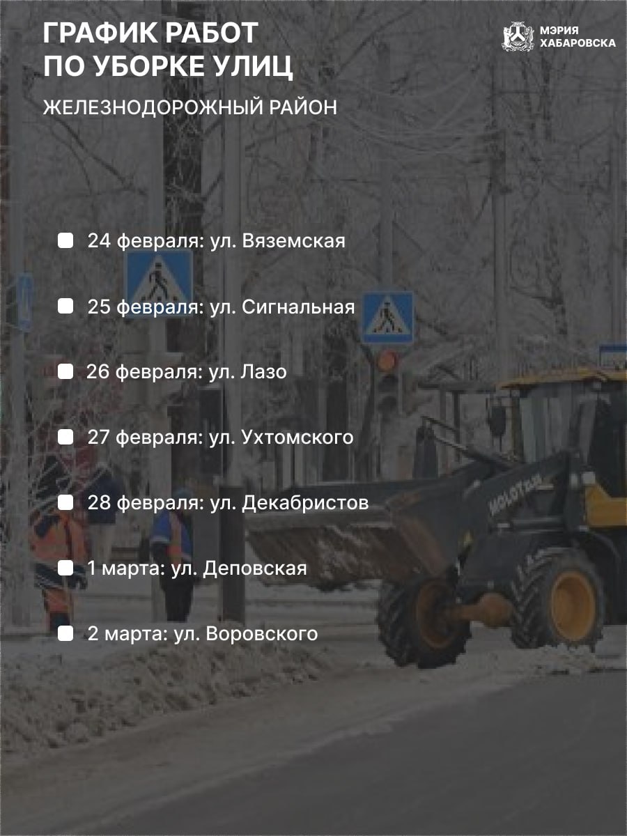 Публикуем график уборки улиц на эту неделю в Хабаровске