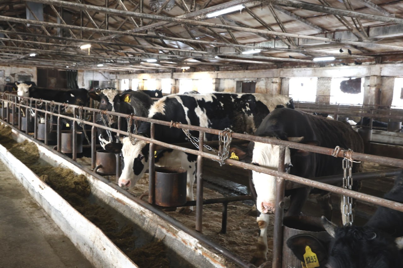 Следующим пунктом посещения стало сельхозпредприятие «Агросфера». Хозяйство ежегодно производит 805 тонн молока и 33 тонны мяса, располагает собственным парком техники, обеспечивает кормами 650 коров.