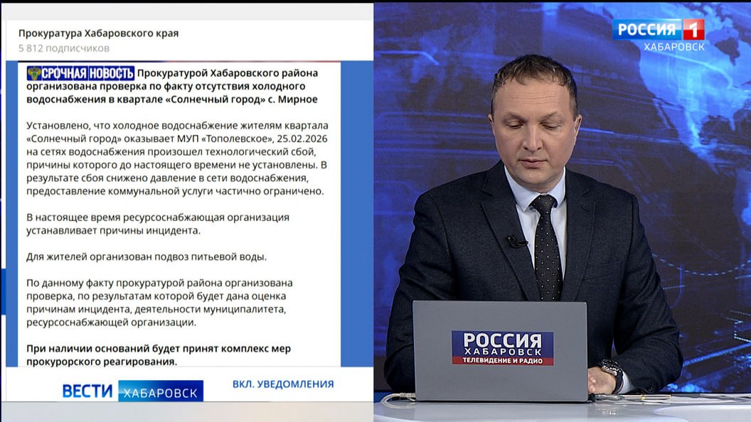 Прокуратура разбирается в ситуации с ограничением холодного водоснабжения в квартале "Солнечный город" села Мирное.