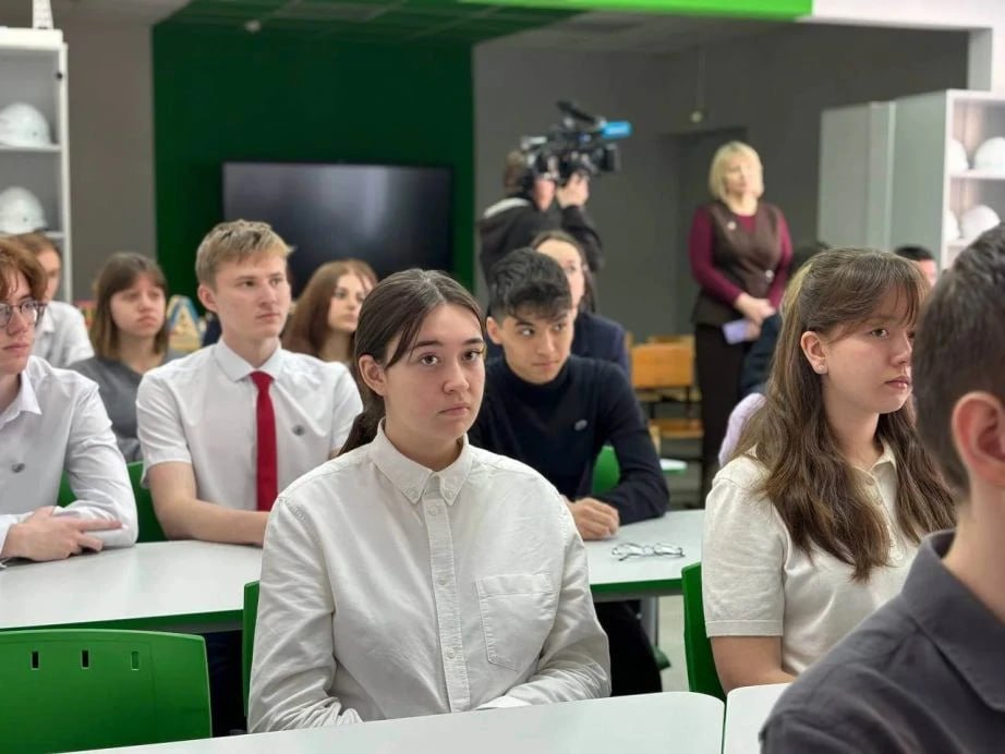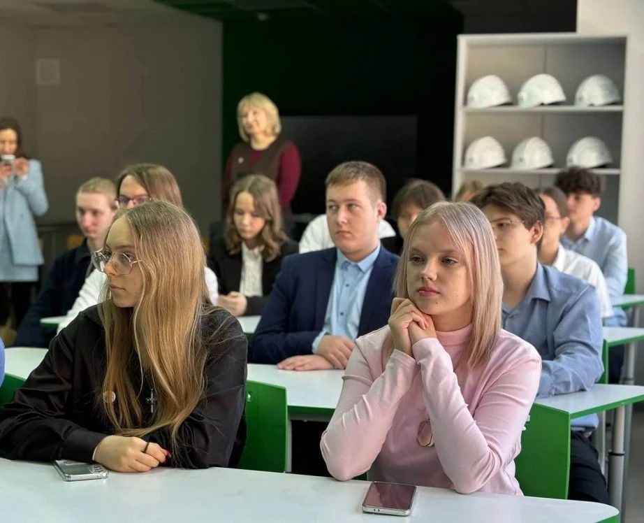 Зампредседателя правительства Хабаровского края по вопросам строительства Алексей Колеватых, президент АСРО «РОС «СОЮЗ» Светлана Дианова и главный архитектор края Сергей Федоров встретились с учениками строительного класса лицея «Вектор».