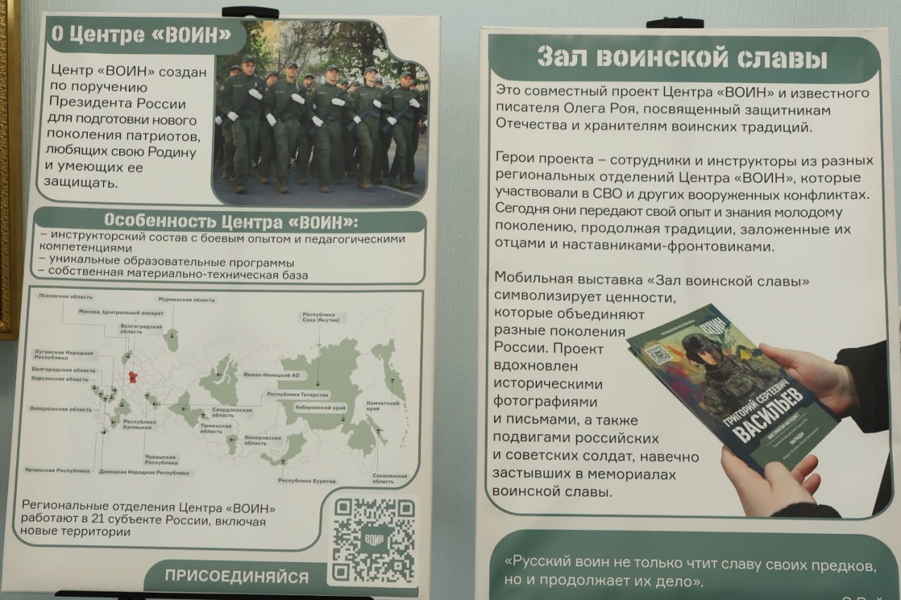 На экспозиции представлены портреты и истории инструкторов центра «ВОИН» из 21 региона, участвовавших в СВО и других конфликтах. Среди них – инструктор-методист Хабаровского филиала Иван Власов, продолжающий семейную традицию служения Родине.