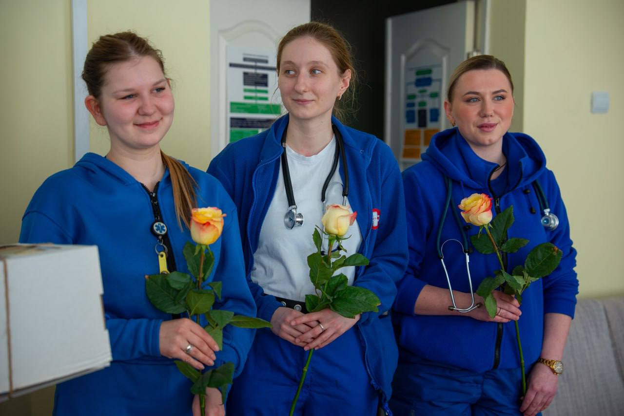 Заехали поздравить наших замечательных женщин-медиков, которые встречают 8 марта на посту.