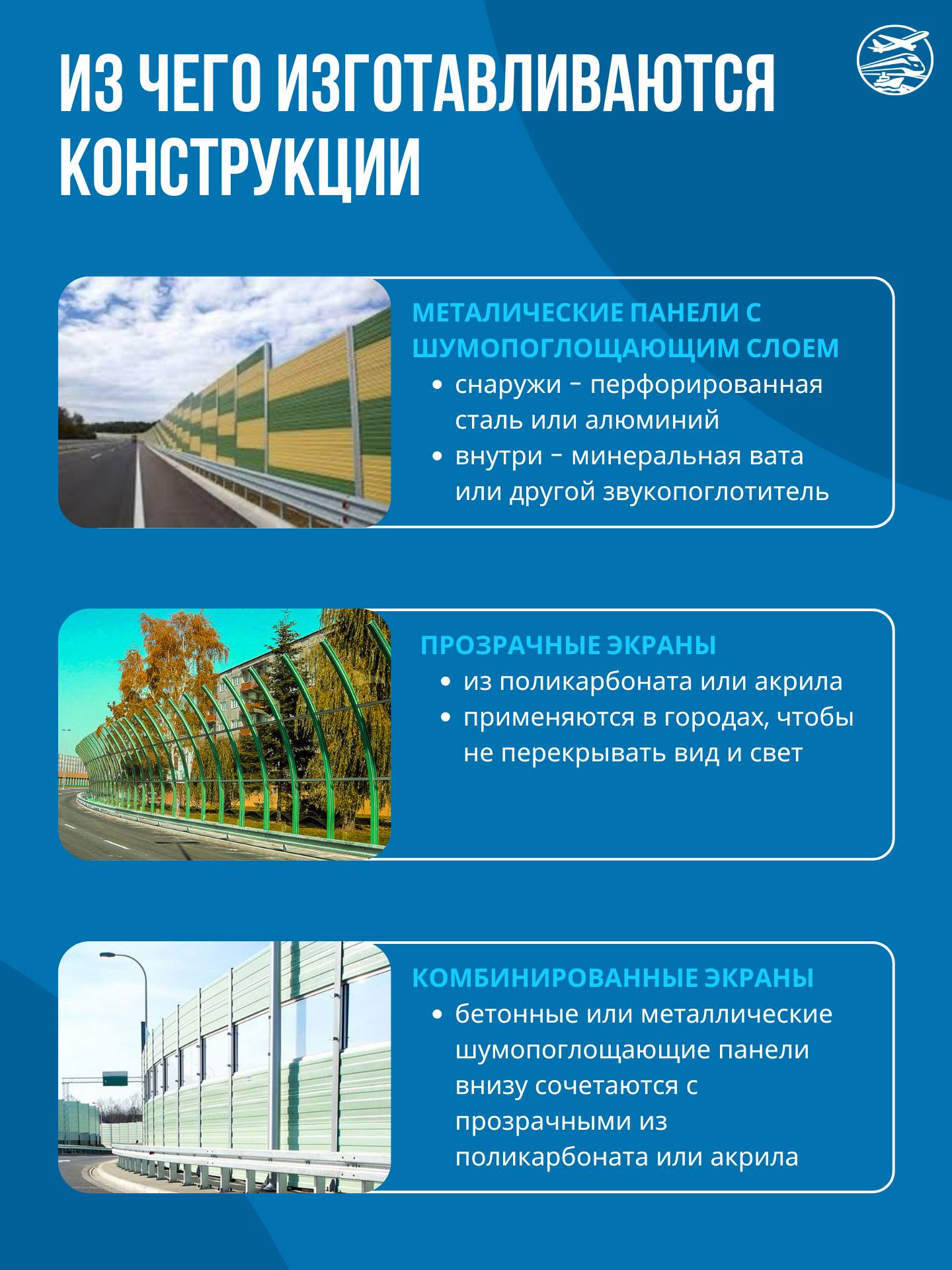Основная задача таких конструкций - снижать уровень транспортного шума и обеспечивать санитарно-эпидемиологическое благополучие прилегающих территорий.