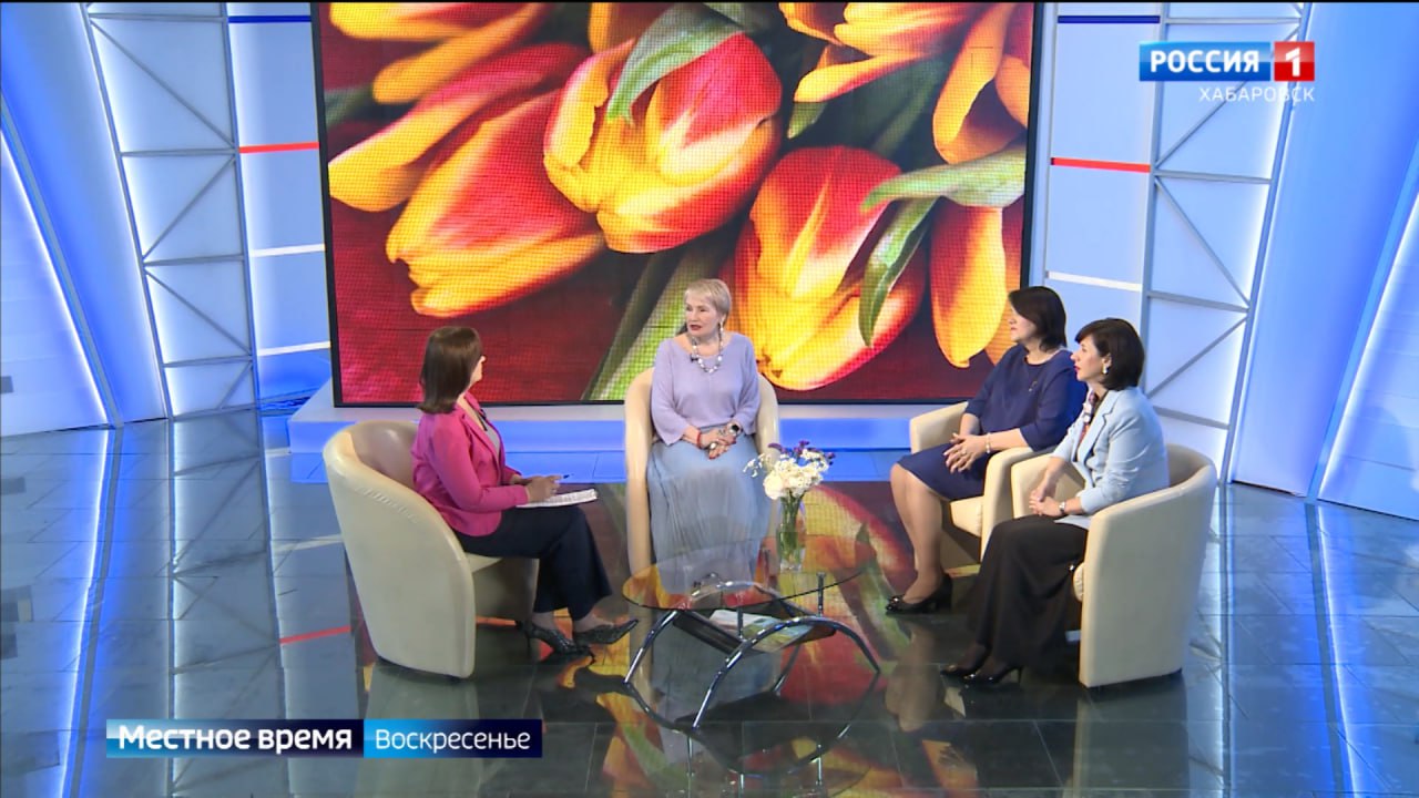 Гости студии – почётный председатель регионального отделения Союза женщин России, председатель общественного совета при краевой Законодательной Думе Валентина Мешкова, заместитель председателя регионального отделения Союза женщин России, директор Краевого театра кукол Екатерина Дубовая и председатель общественной организации «Авто-леди» регионального отделения Союза женщин России Елена Насырова.