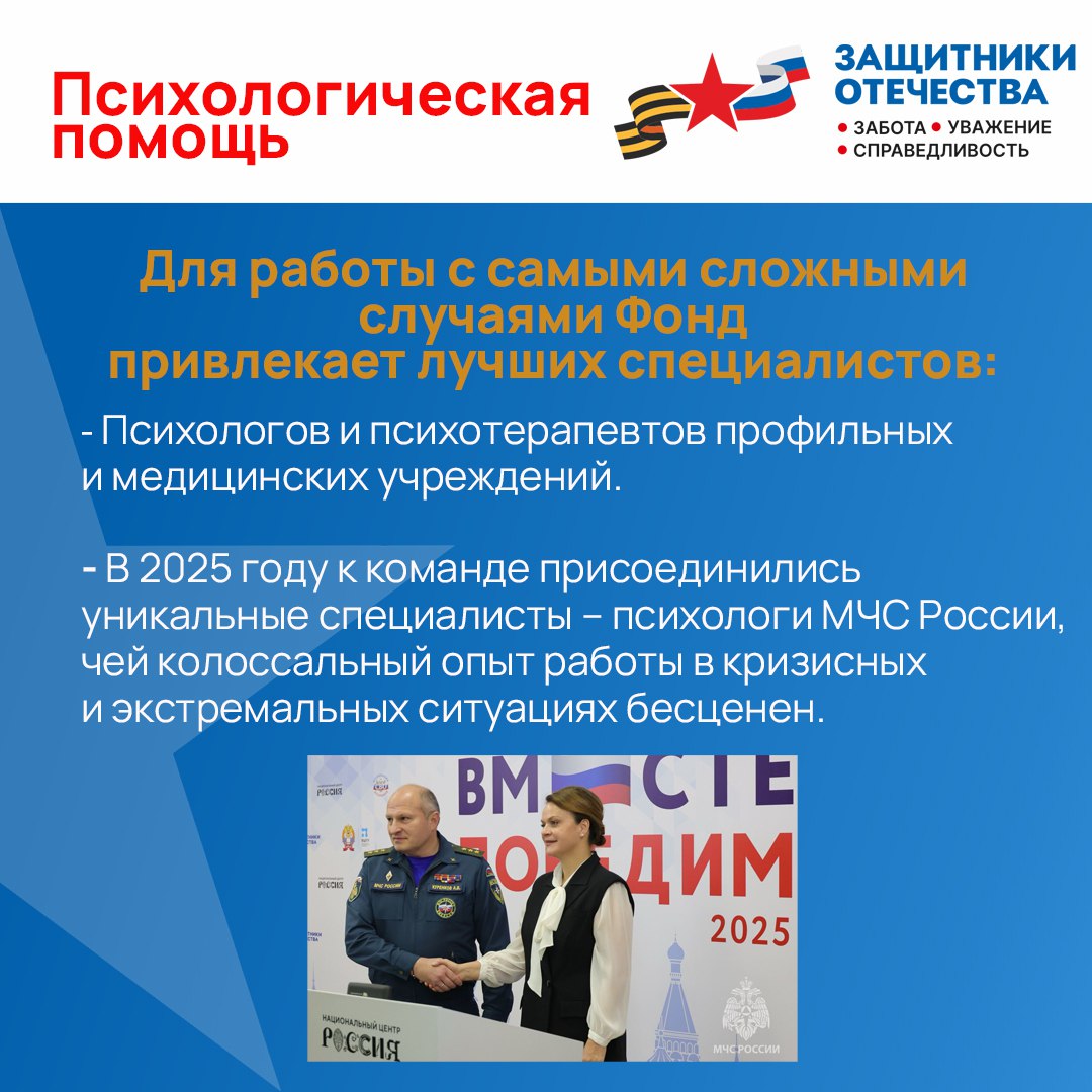 В регионе создана многоуровневая система психологической помощи, включающая консультации и групповые занятия. С 2025 года демобилизованные участники СВО могут бесплатно проходить санаторно-курортное лечение в центрах реабилитации.