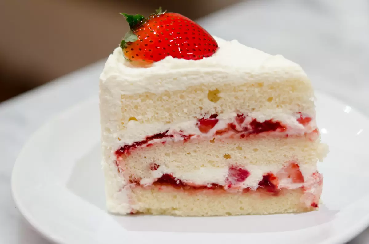 Пока бисквит остывает, готовится крем: нарезанная клубника смешивается с сахаром, лимонным соком и солью. Оставляют настояться, а взбитые сливки готовят отдельно. Остуженный бисквит разрезают на три коржа, каждый из которых пропитывают соком ягод и укладывают клубнику и сливки. Накрывают средним слоем бисквита и повторяют процесс.