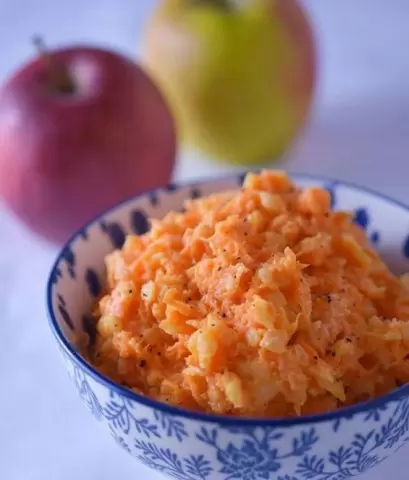 - Яблоко для остроты: нарезать яблоко кубиками и обжарить его на небольшом количестве масла с добавлением щепотки сахара. Это придаст ему легкую карамелизацию, которая прекрасно сочетается с морковью. Можно также добавить немного молотого перца и корицы для остроты.