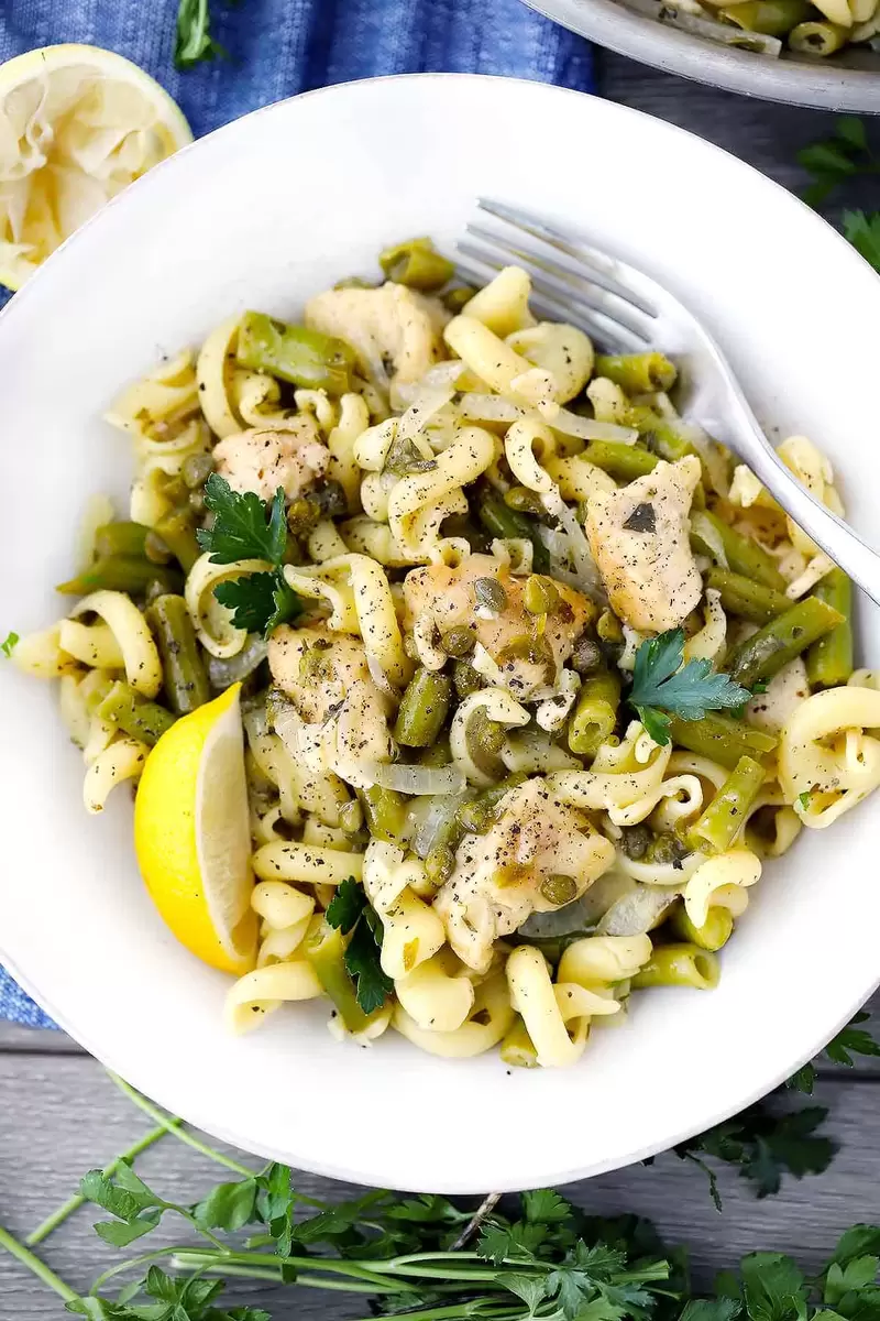 Итальянская кухня известна своими необыкновенными и насыщенными вкусами, и паста с курицей пикката — это яркое тому подтверждение. В этом рецепте перенесена классическая куриная пикката в мир пасты, превращая её в сытное, но лёгкое блюдо. Использование лимонно-масляного соуса и ароматных каперсов придаёт особую изюминку, а присутствие стручковой фасоли не только добавляет цвета, но и улучшает питательную ценность.