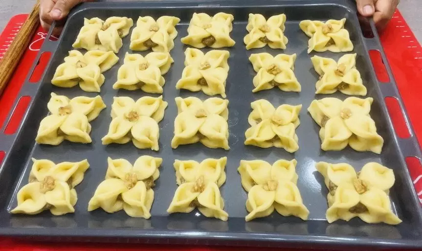 Раскатайте тесто на круги, заверните начинку и защипните края.