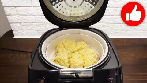 Установите корзину пароварки с мясом и включите режим «Рис». Готовьте блюдо в течение 35 минут. По завершении, достаньте мясо и посыпьте его натертым сыром. Закройте крышку на 2 минуты, чтобы сыр немного расплавился.