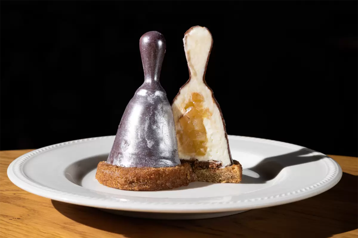 К премьере проекта шеф-кондитер Pinskiy&Co создал десерт в виде колокольчика, символизирующего дуэль, являющуюся центральным элементом шоу. «Колокольчик» радует разнообразием текстур: от ванильного ганаша с томлеными яблоками до влажного пряного бисквита с нотами специй, завершающегося хрустящей вафельной крошкой. Данный десерт обещает не только радовать глаз, но и напомнить о приятных моментах из детства.