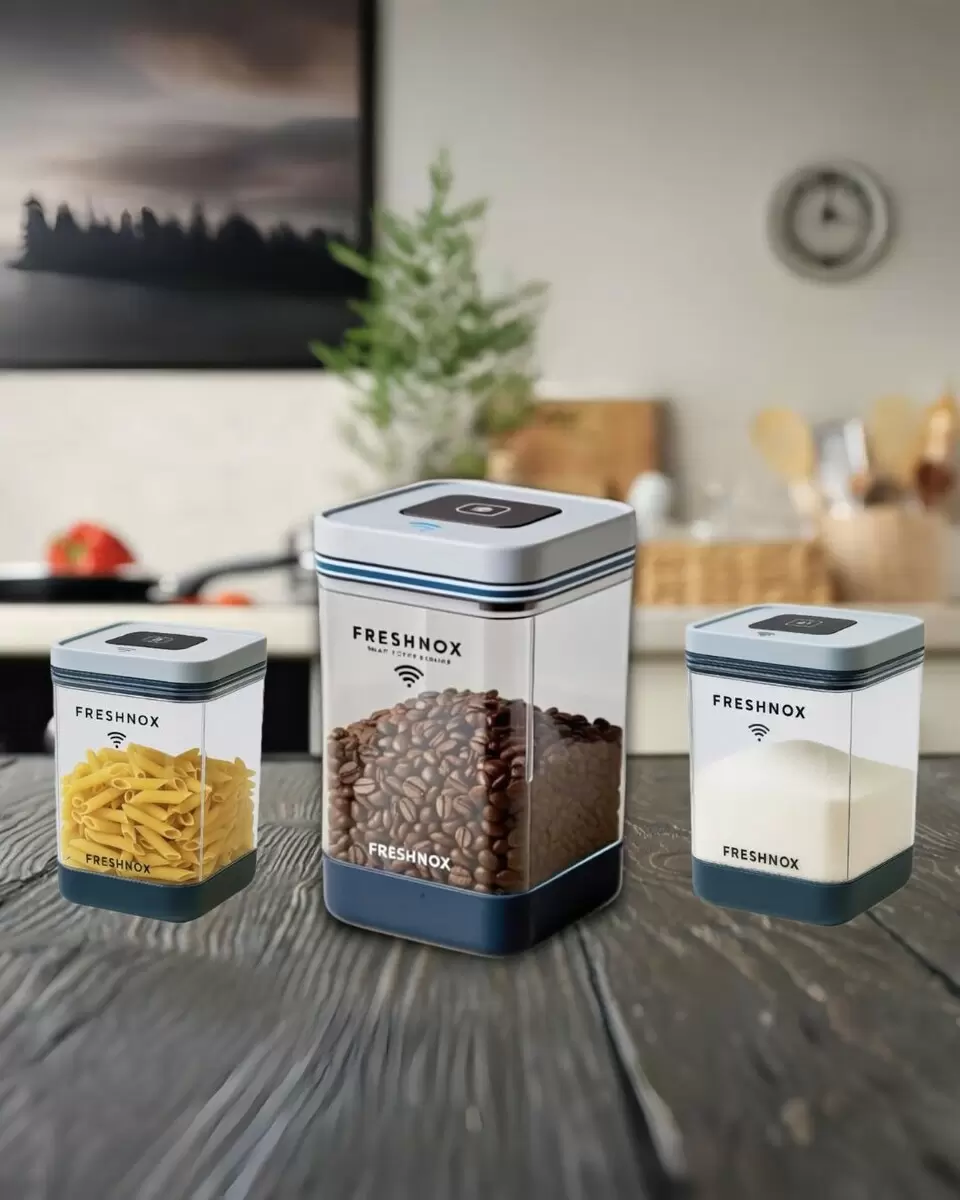 Современная кухня вступает в эру технологий! Контейнер Freshnox представляет собой герметичную ёмкость, оснащённую датчиками, способными отслеживать уровень содержимого. С помощью мобильного приложения пользователи могут получать уведомления о необходимости пополнить запасы.