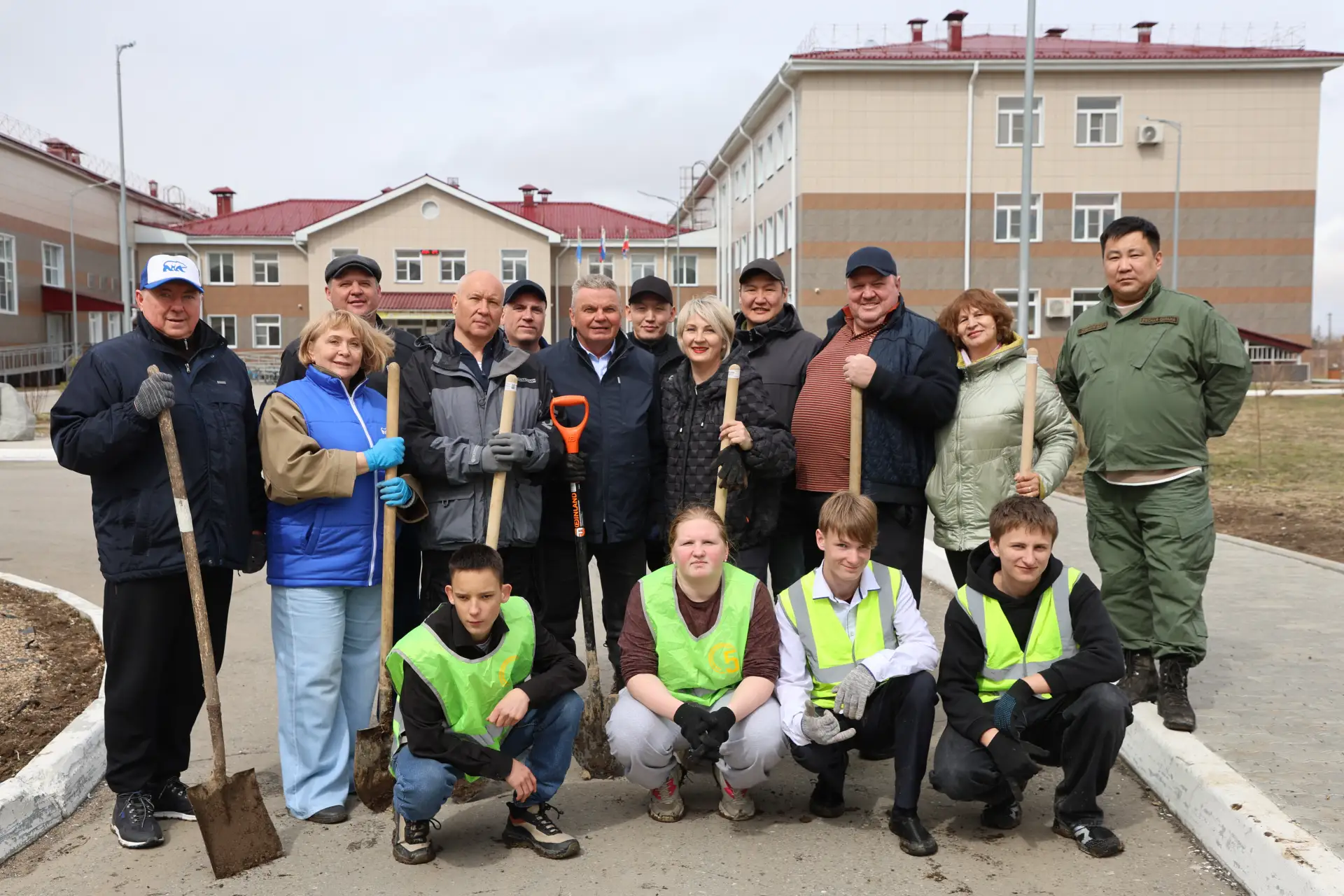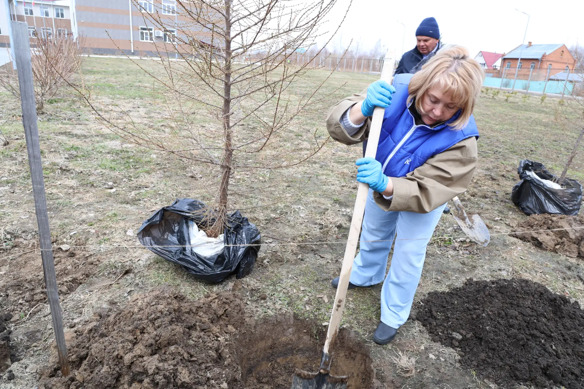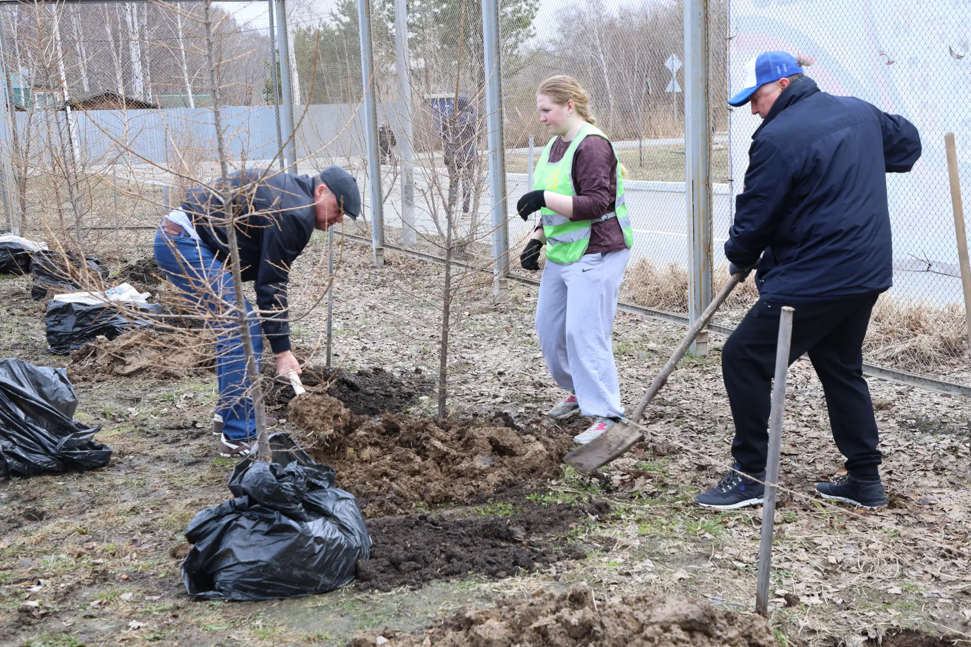 Вместе с учениками посадили деревья на аллее Памяти в честь выпускников школы, погибших в зоне СВО. Трехлетние лиственницы были безвозмездно предоставлены ООО «Растим лес».