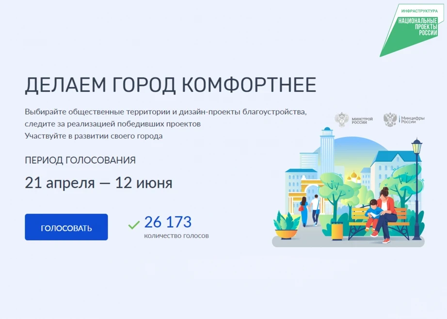 Всероссийское голосование за объекты благоустройства – часть федпроекта «Формирование комфортной городской среды», который курирует Минстрой РФ в рамках президентского нацпроекта «Инфраструктура для жизни» при поддержке Единой России в рамках проекта «Городская среда».